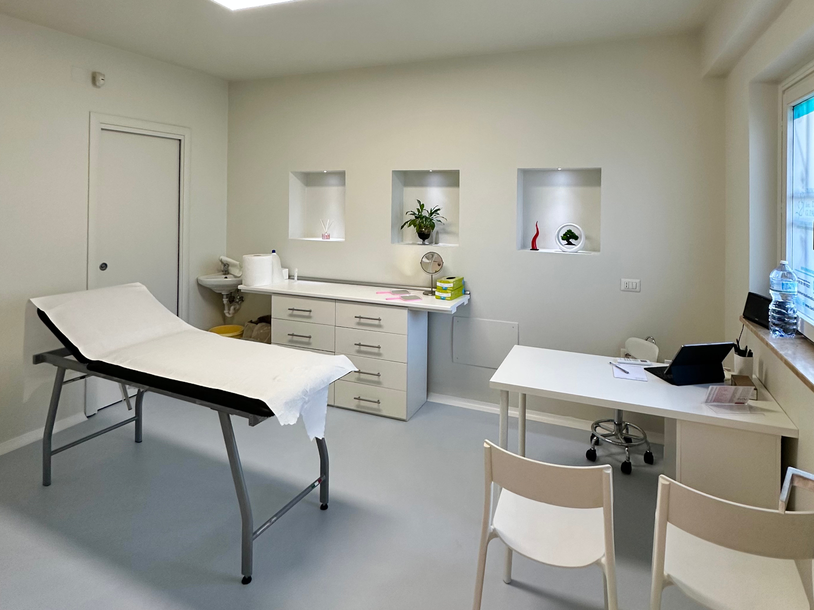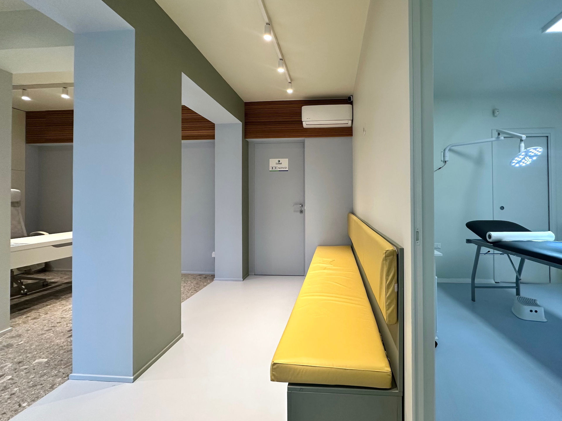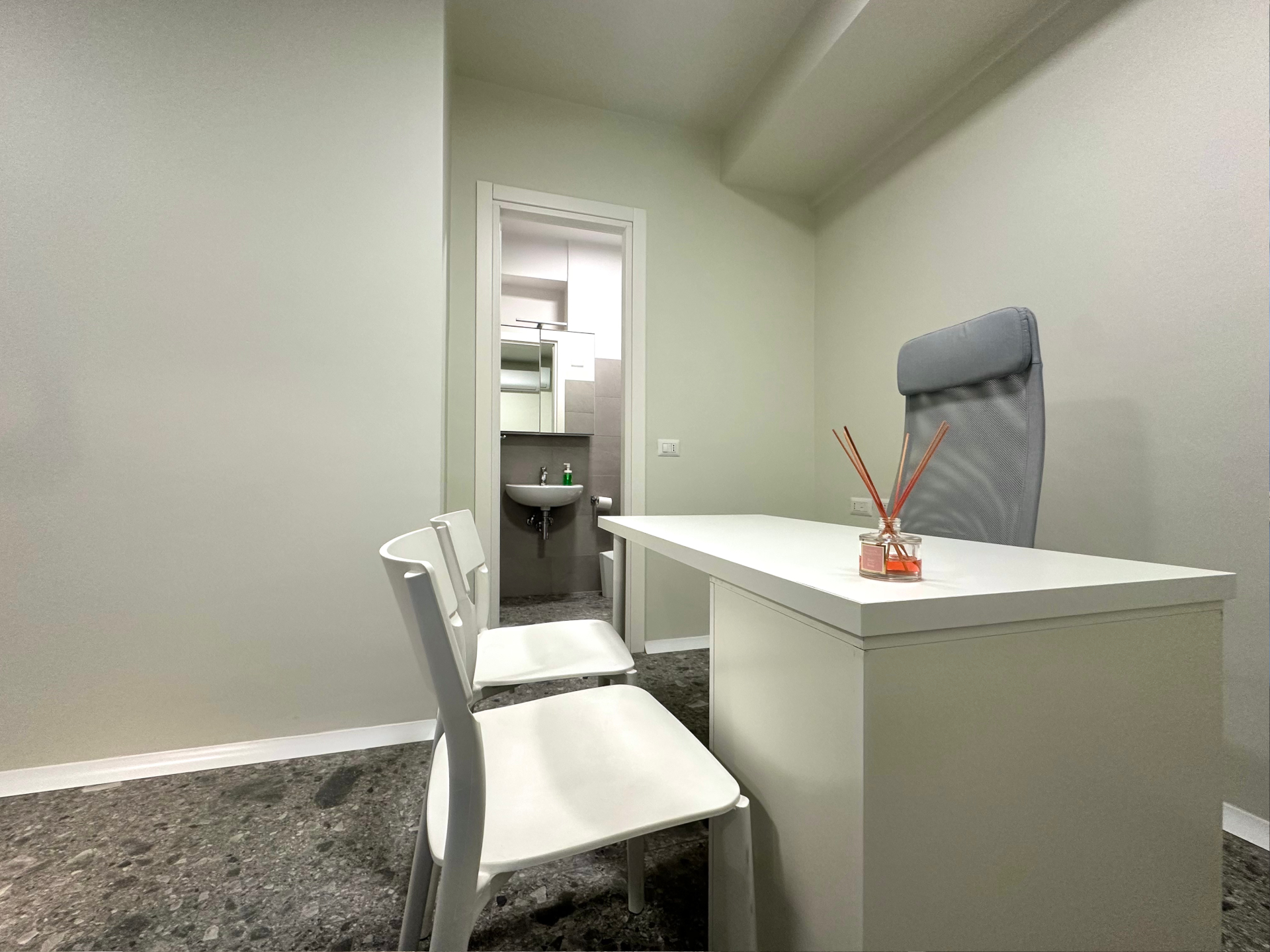 Disponiamo di studi indipendenti, luminosi e climatizzati individualmente. Ogni studio è fornito di lavabo, connessione internet ad alta velocità e arredamento medico essenziale, pronto all'uso. -